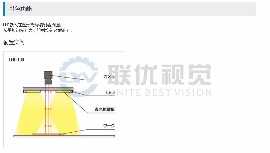 LED嵌入在光導(dǎo)漫射器周?chē)钠教沟陌l(fā)光表面發(fā)出均勻的光。還可以提供從成角度的發(fā)光表面照射的LFR-100K / LFR-130K。